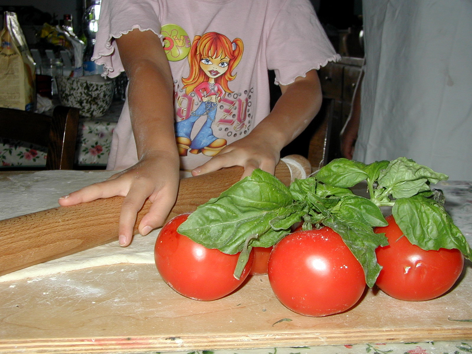 Preparing the dough, kneading it is like playing with the play dough but much better because then we can eat the work done. The problem is to be patient to wait an hour for the dough to rise, and then great excitement again with all that tomatoes, chopped mozzarella and many other ingredients to fit on top.Every dough is loved: fresh pasta with eggs , gnocchi and biscotti , pizza