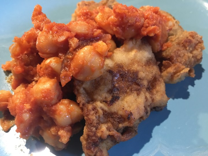 Baccalà (salted codfish)with chickpeas is a dish of traditional Italian cuisine. It is a recipe of peasant and mountain cuisine in many Italian regions because the cod ,as a baccalà or a stoccafisso,was one of the few fish available everywhere and, thanks to its versatility in the kitchen, after the soaking in water it can be cooked in wet , with chickpeas or beans, or fried.