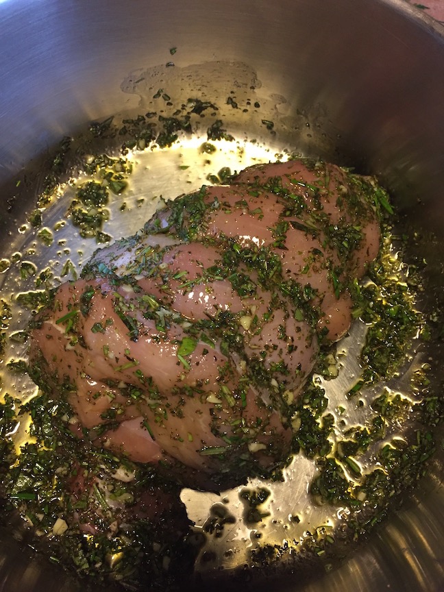 As a change ,if you like pork,after covering the meat with the herbs, wrap it with 5 slices of pancetta