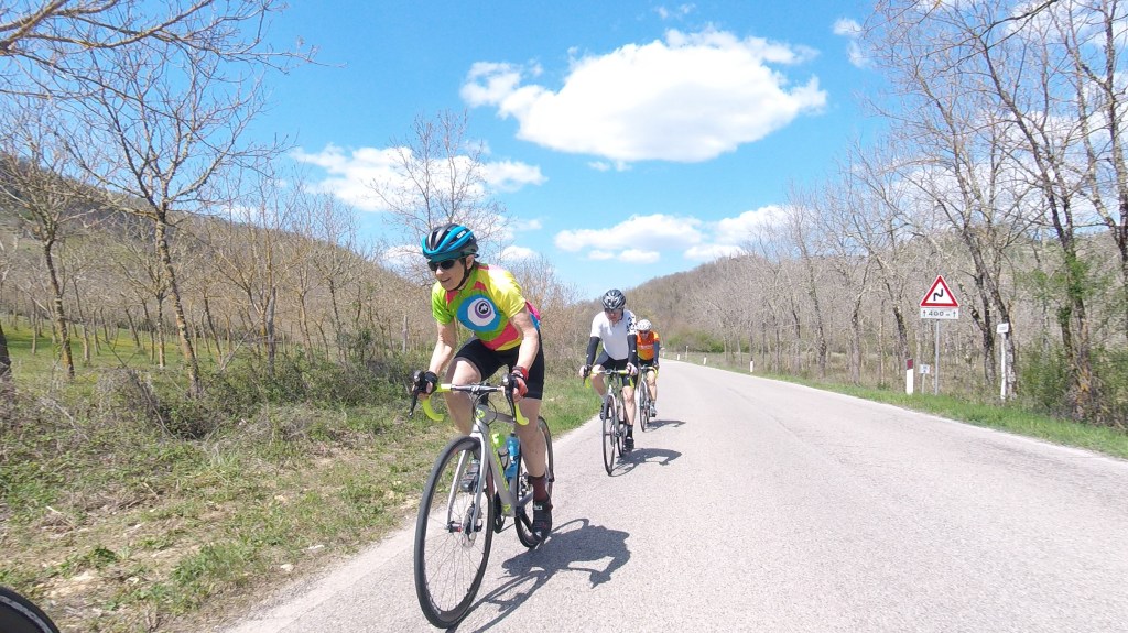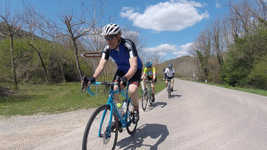 Then you stop at a small grocery store, take a coffee. They-those you have just overtaken -stop to have a coffee, take a sandwich and you start chatting with them. Oh, mamma mia, they’re so excited: they talk about what they feel riding on these roads