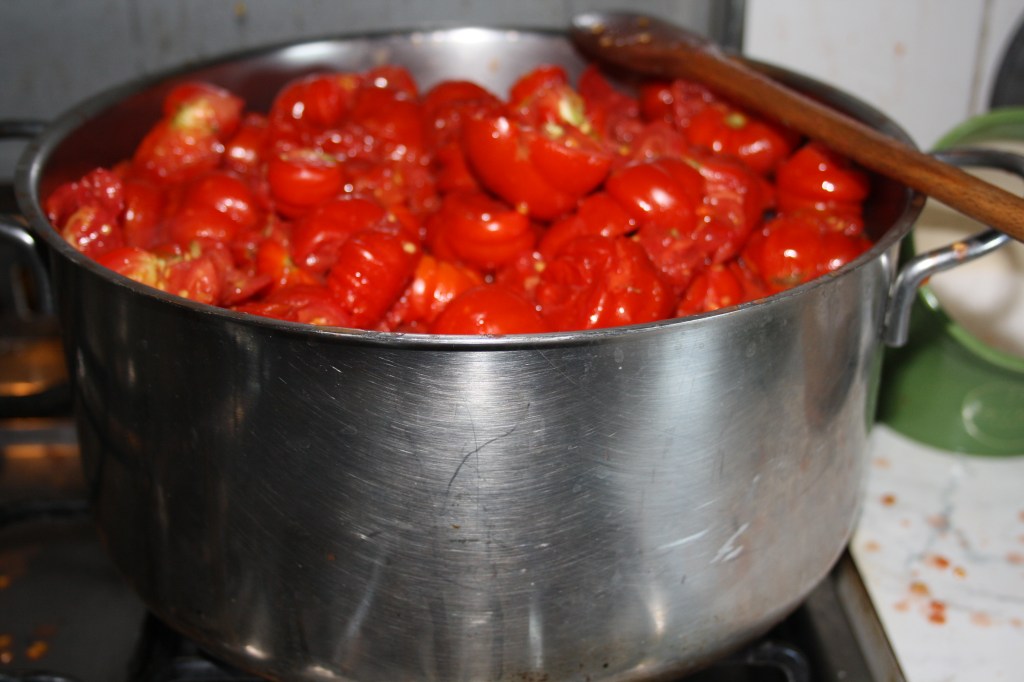 July,August:this is the moment .We are ready ,our tomatoes are ready and so we organize ourselves for an after dinner great activity: homemade passata/tomato purée.