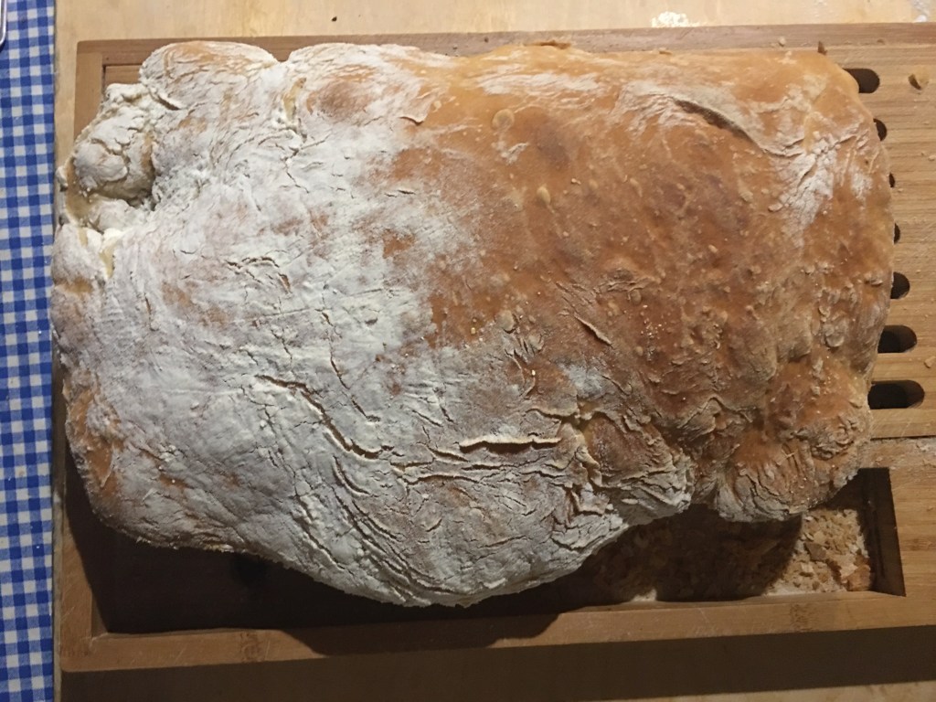 Not to forget:this loaf is somewhat elongated, broad and flattish  like a slipper=ciabatta in Italian