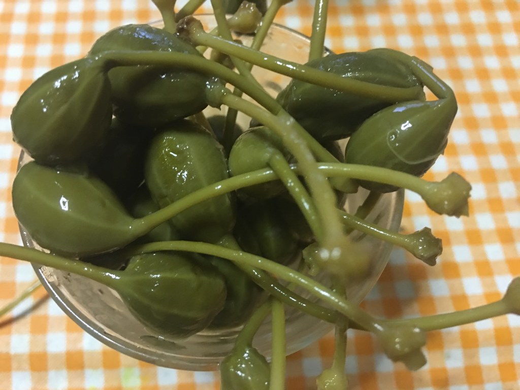 We used capers in the Baked Peppers, in the Pasta alla Puttanesca, in the Panzanella and in many other dishes.