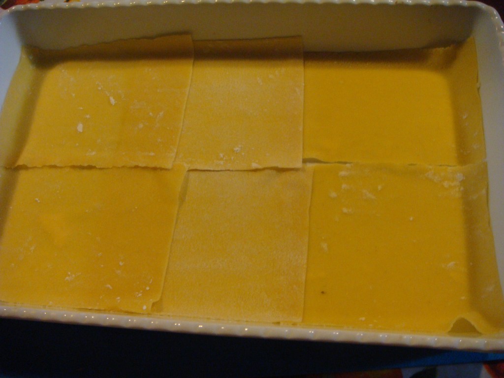 Drizzle with a little extra virgin olive oil, especially if you have the lasagne sheets on top.