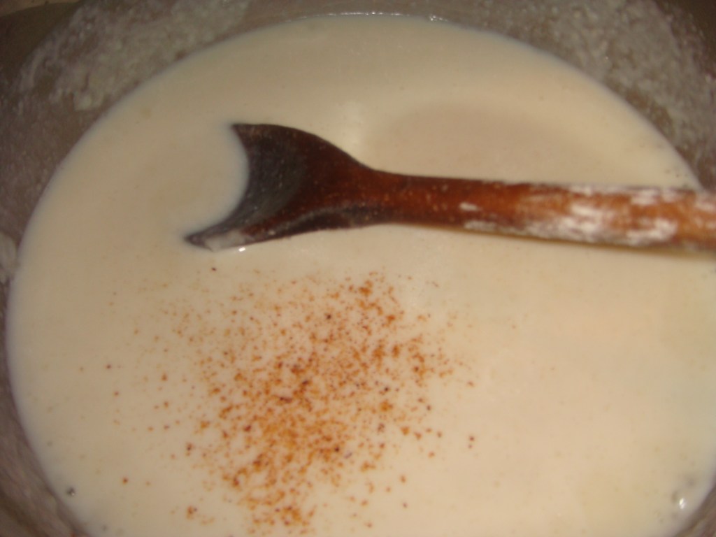 Season with salt ,pepper and a little nutmeg .Cook until thickened ( ca. 3 minutes),stirring continuously.