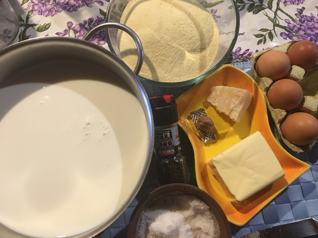 1 l milk + 2 tbs. – 250g semolina flour – 100 gr. butter