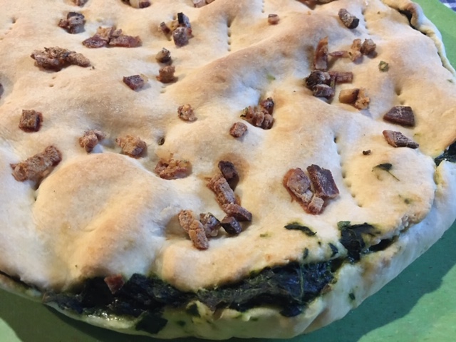 3- Savoury cake. In the picture you see Erbazzone done with spinach, pancetta, egg but it’s possible to avoid the pancetta.