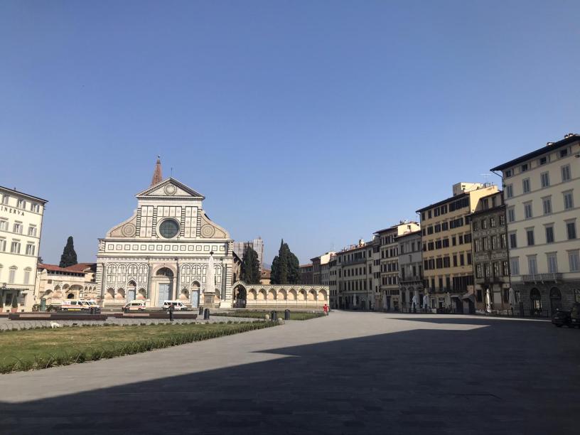 Cities are deserted, like in the picture taken by a friend who lives in Santa Maria Novella Square (Florence), people walking with dogs,