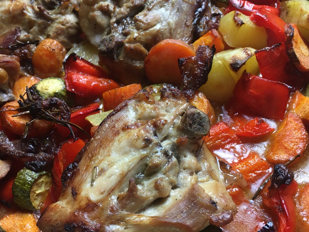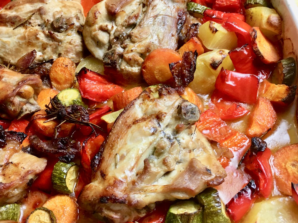 5 thighs 1 bell pepper/capsicum 3 courgettes/zucchini