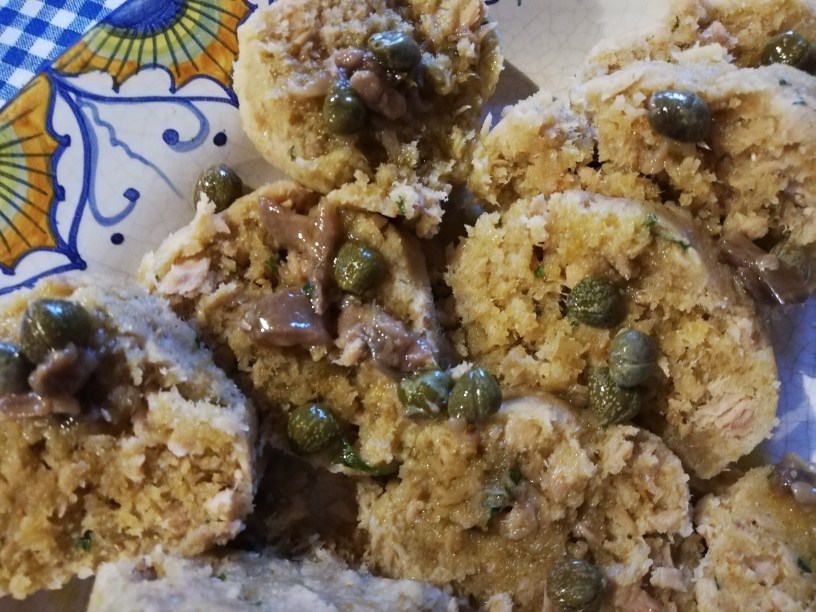 This Salame al Tonno /Tuna salami is a perfect dish to prepare in advance, excellent in summer and for the Office Desk Lunch. Normally we prepare it in small quantities as an appetizer, but it is perfect as a main dish accompanied by pickled eggs or an excellent salad. You can use canned tuna, but choose the best one.