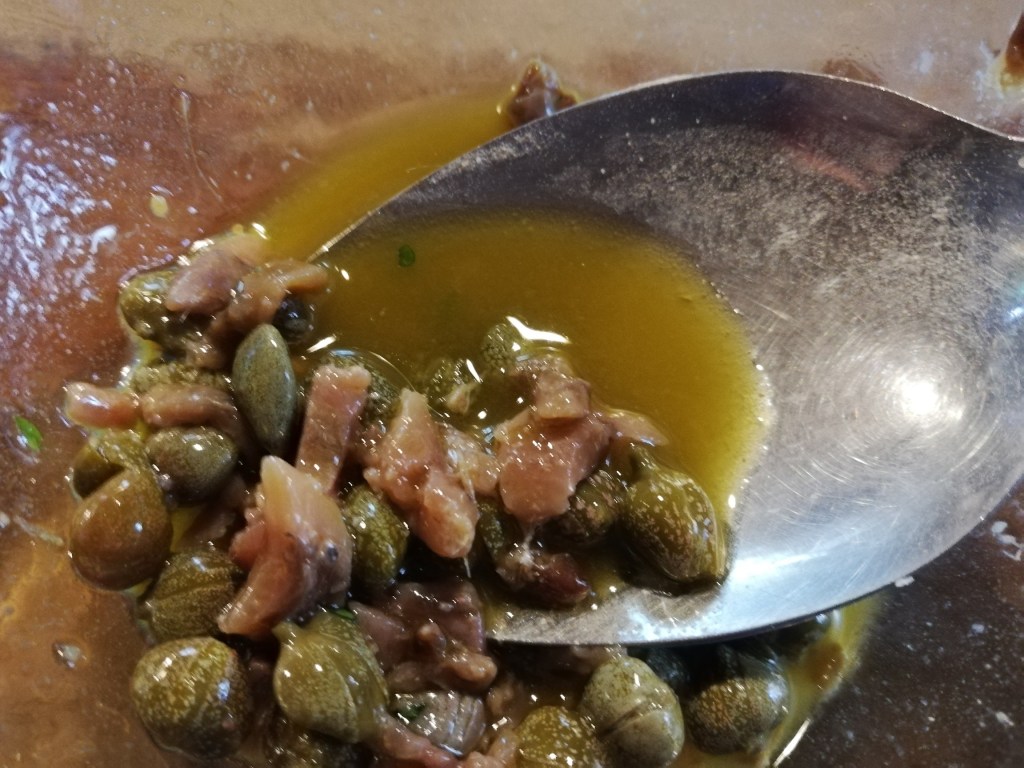 4 anchovies 1 spoonful capers 2 spoonfuls oil Wine Vinegar