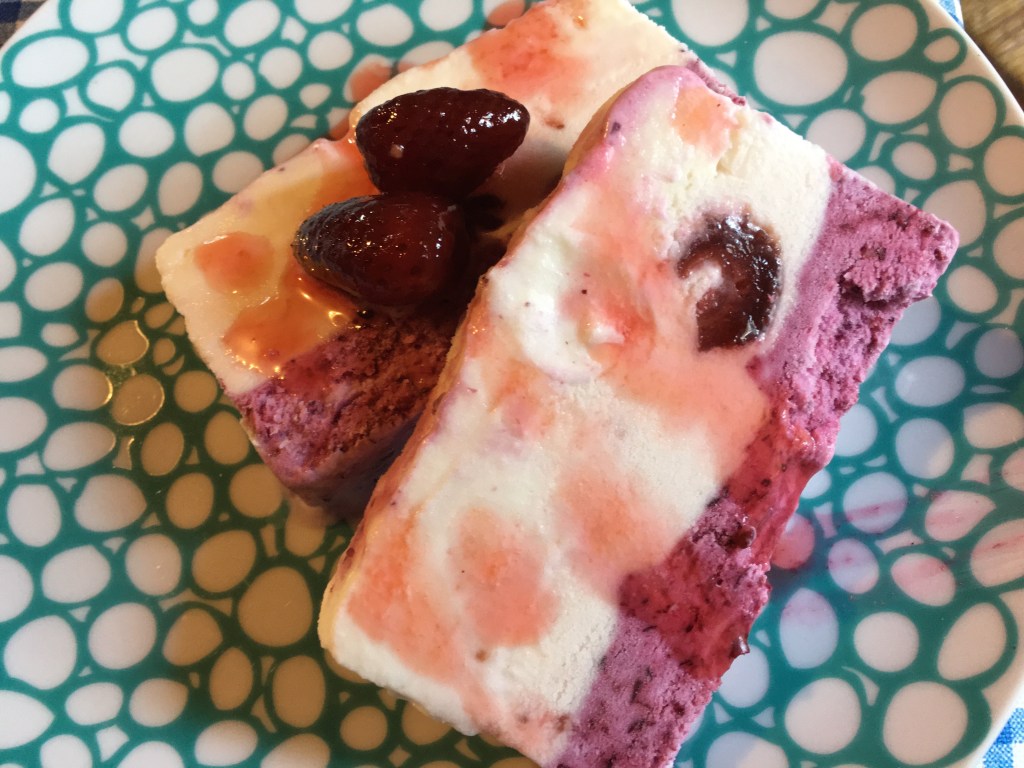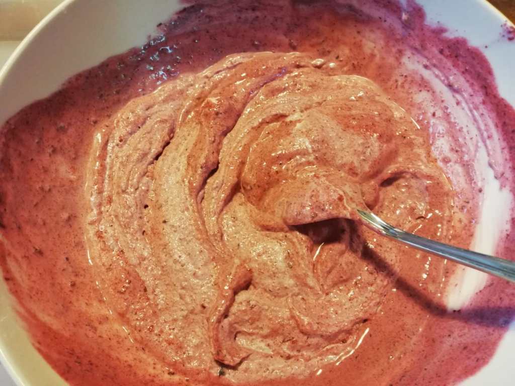 Make the vanilla gelato recipe. Mix 200 gr. of berries in the blender,