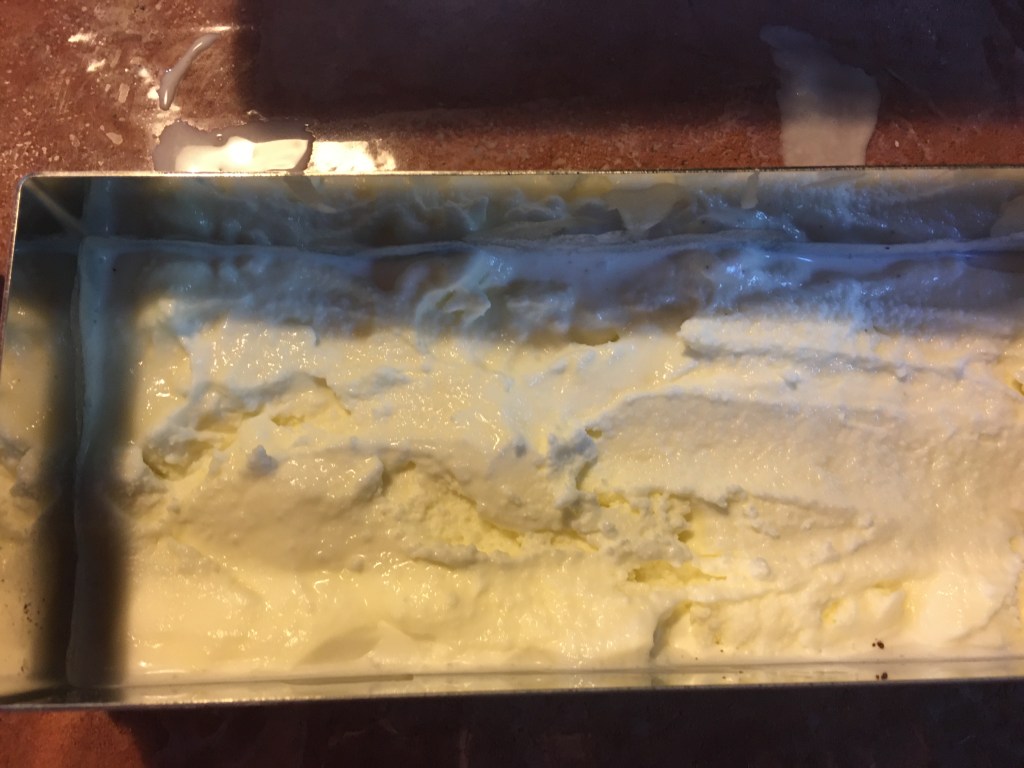 And then, similar to the cake with berries, let’s start with a base of vanilla Italian ice cream/gelato. We let it freeze for 2 hours.