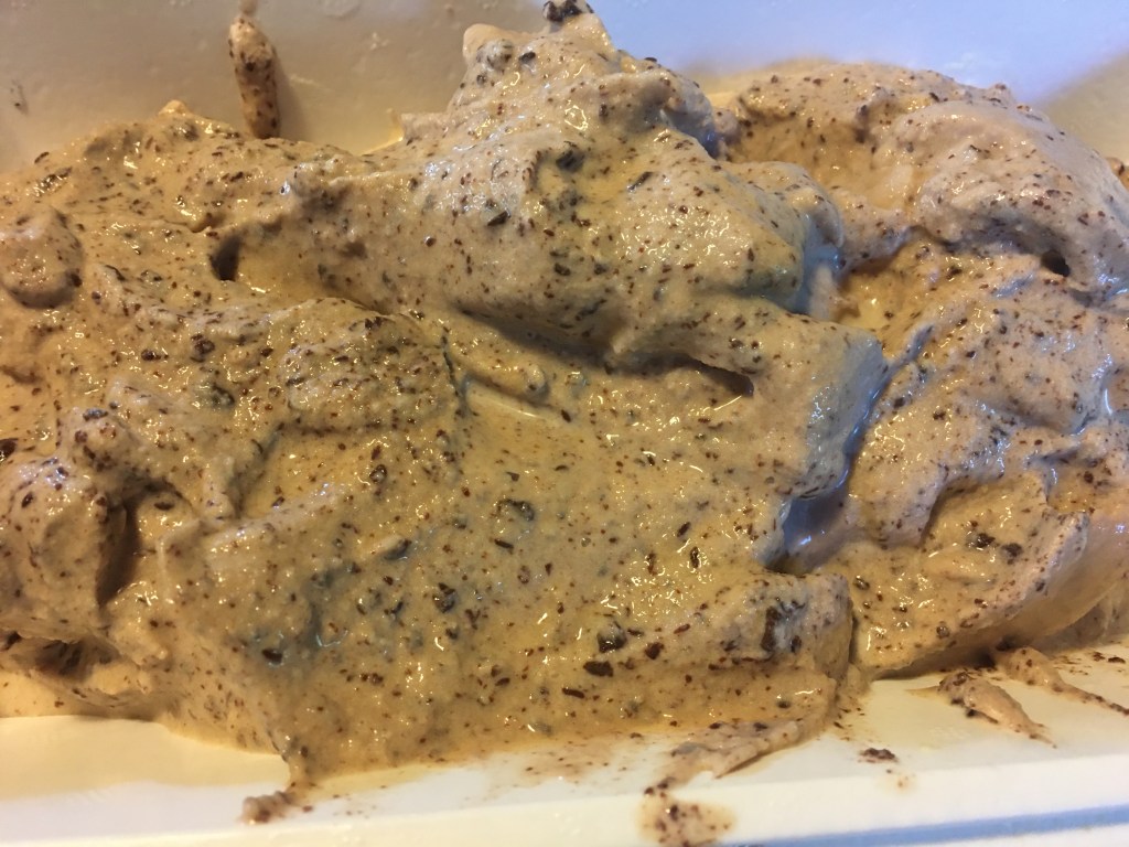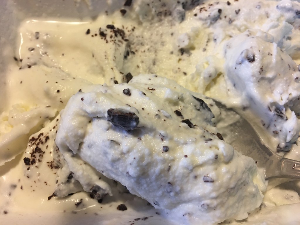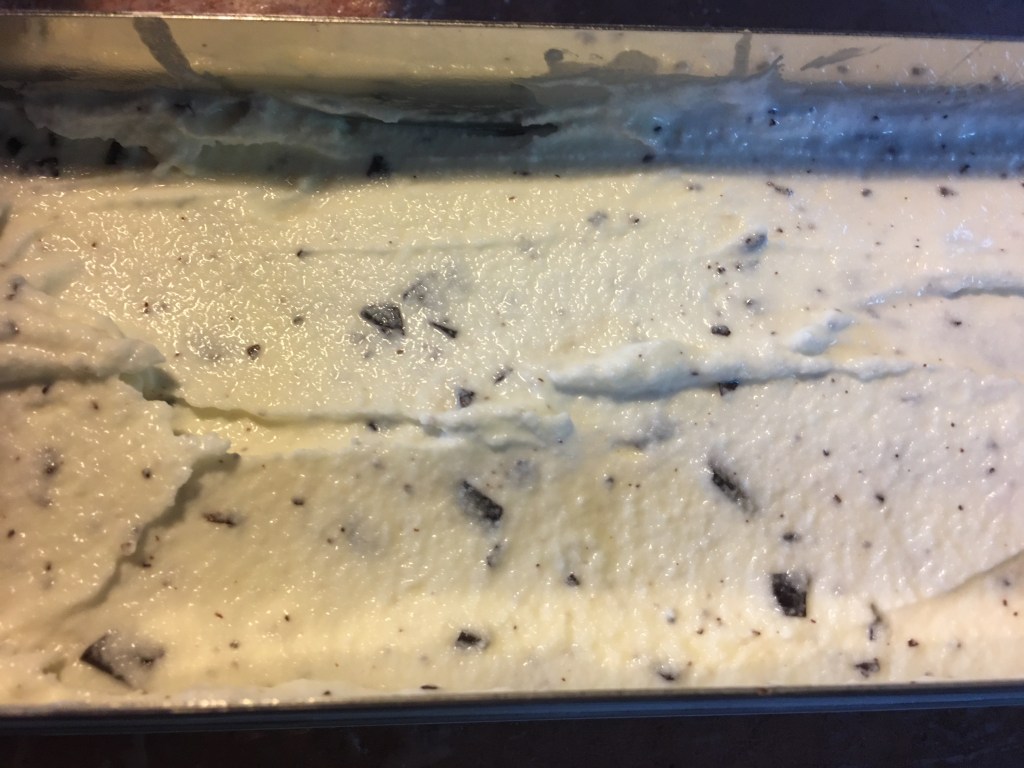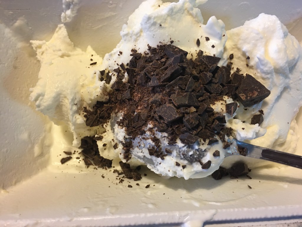 Then we make another vanilla ice cream/gelato but add pieces of chocolate, so it becomes a nice stracciatella.