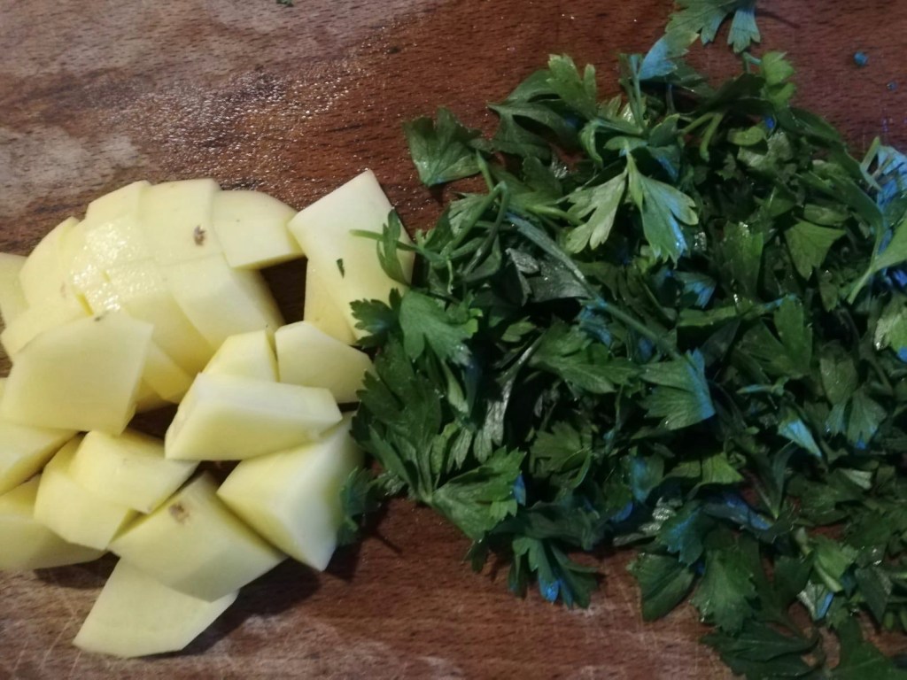 Then cut all the vegetables into slices of equal thickness and – if you prefer – into cubes of about 1 cm per side.