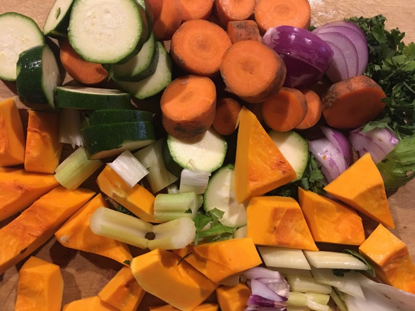 1courgette/zucchini 1 Carrot 200 gr / 7 oz. of pumpkin 1 clove garlic 1 onion