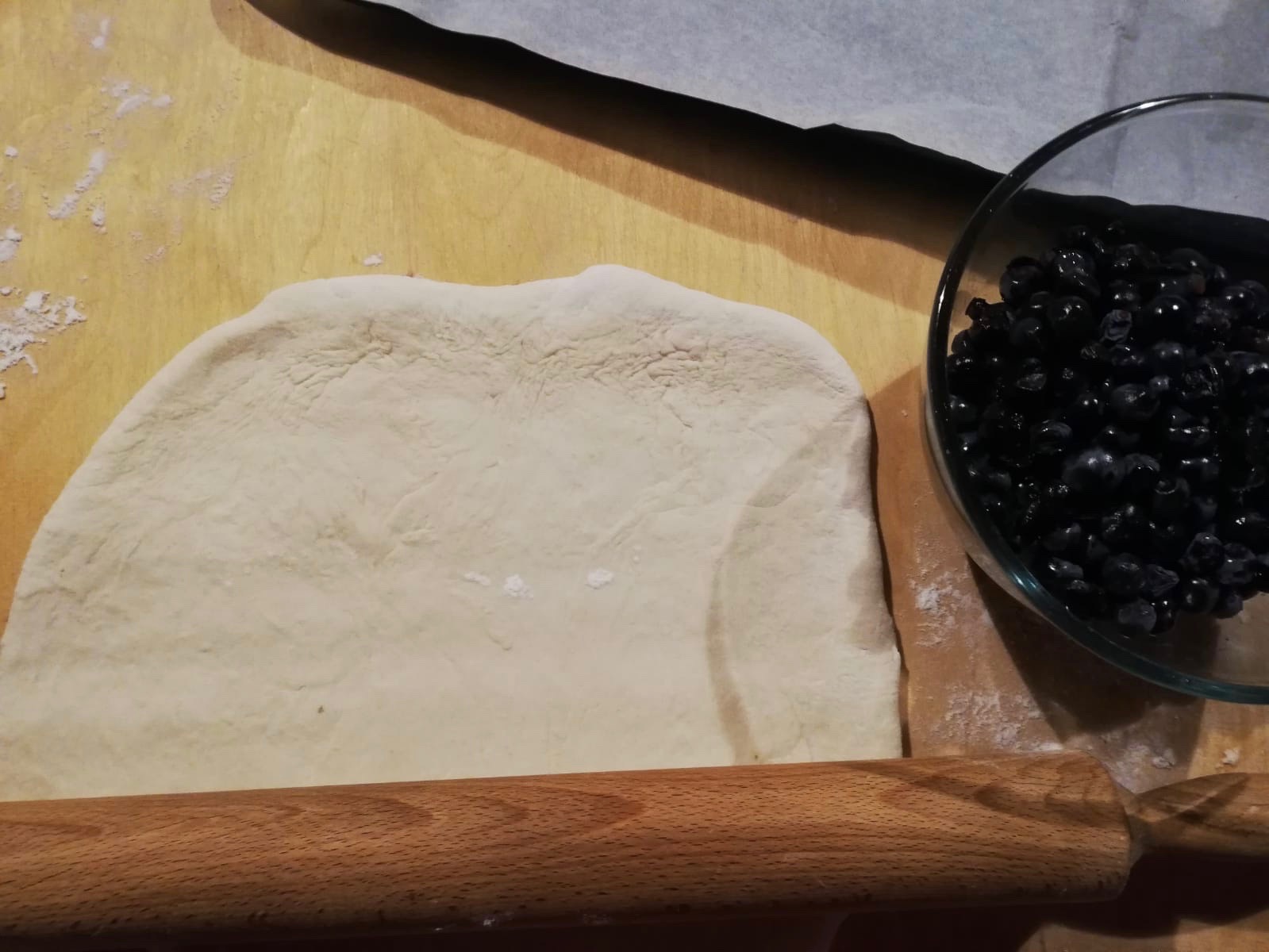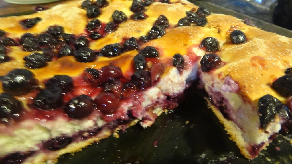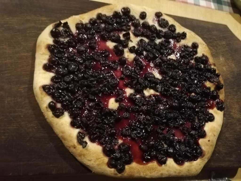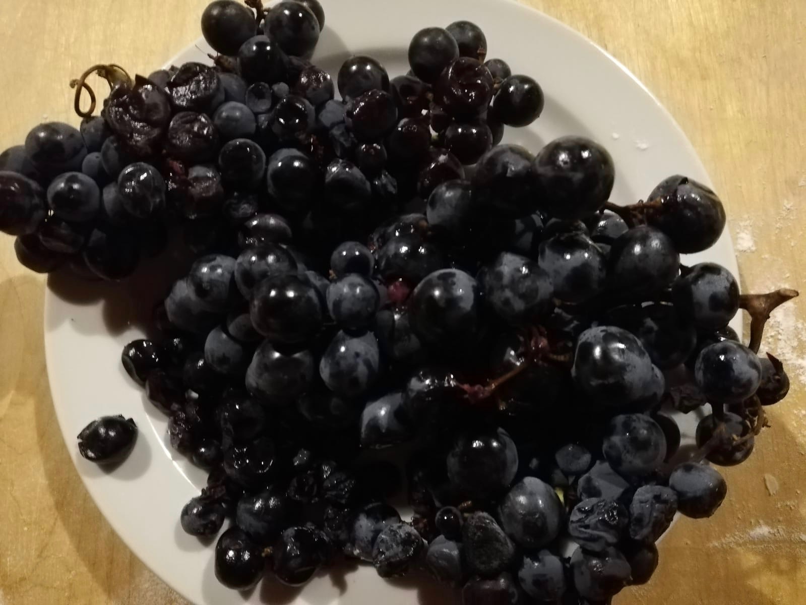 Many times it’s covered with a second layer of dough and a second layer of grapes, sugar and oil