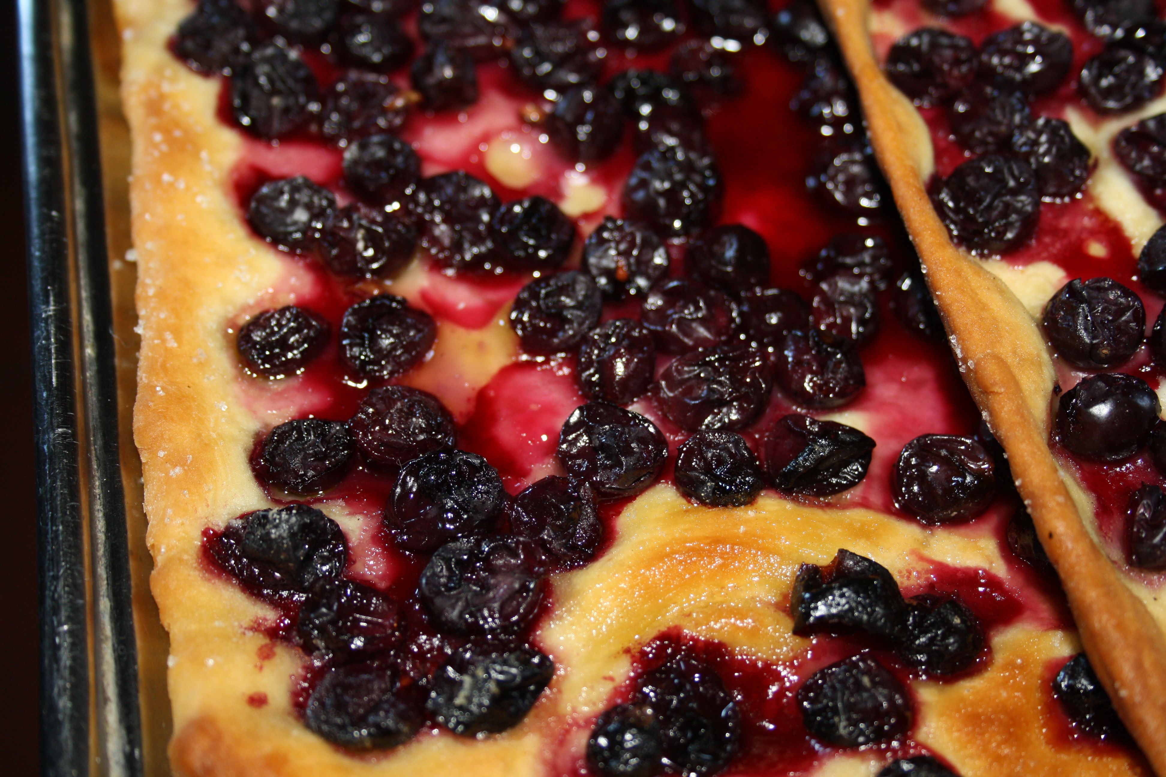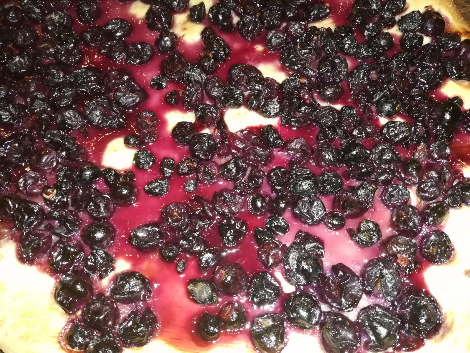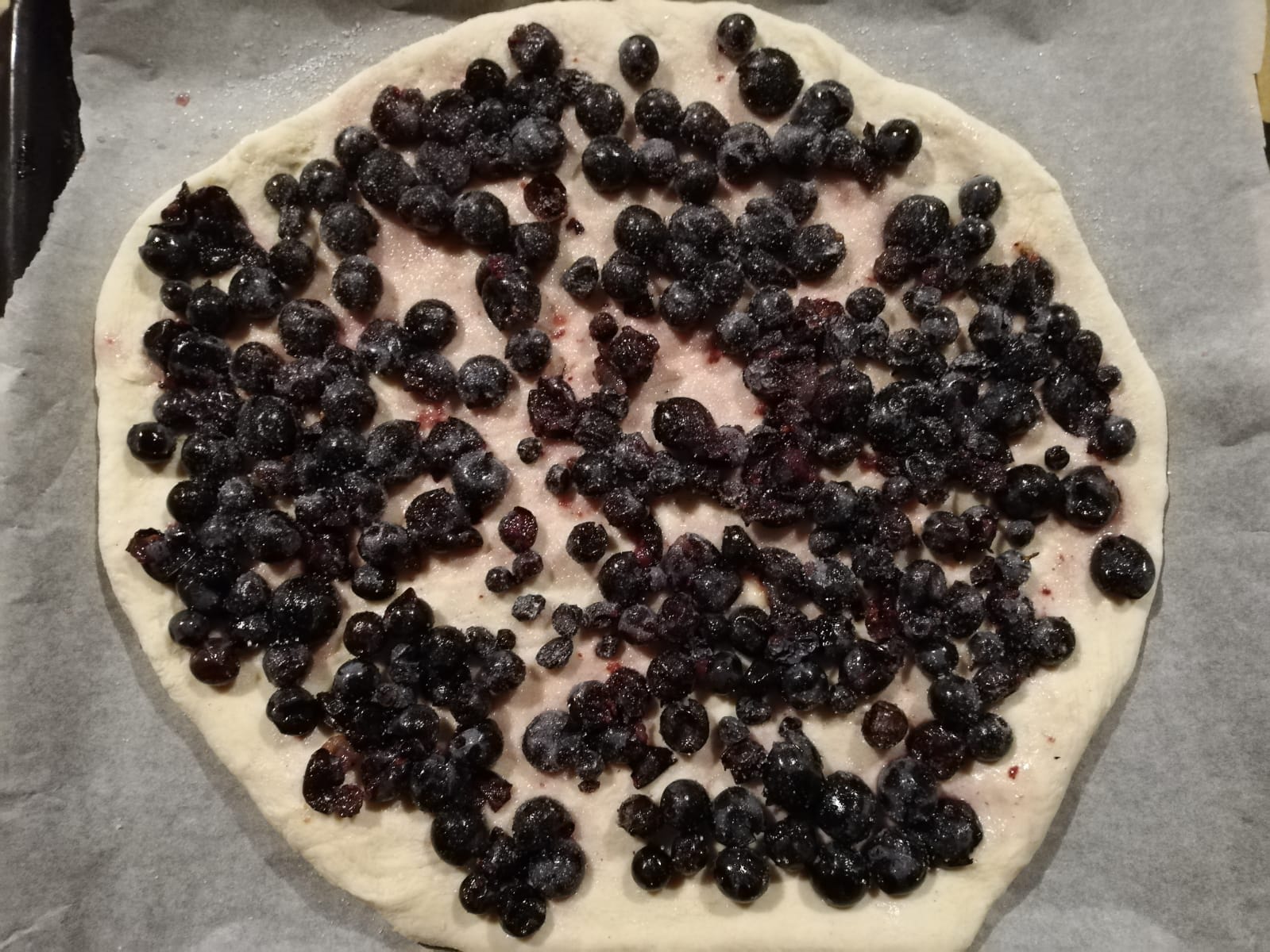 Many times it’s covered with a second layer of dough and a second layer of grapes, sugar and oil