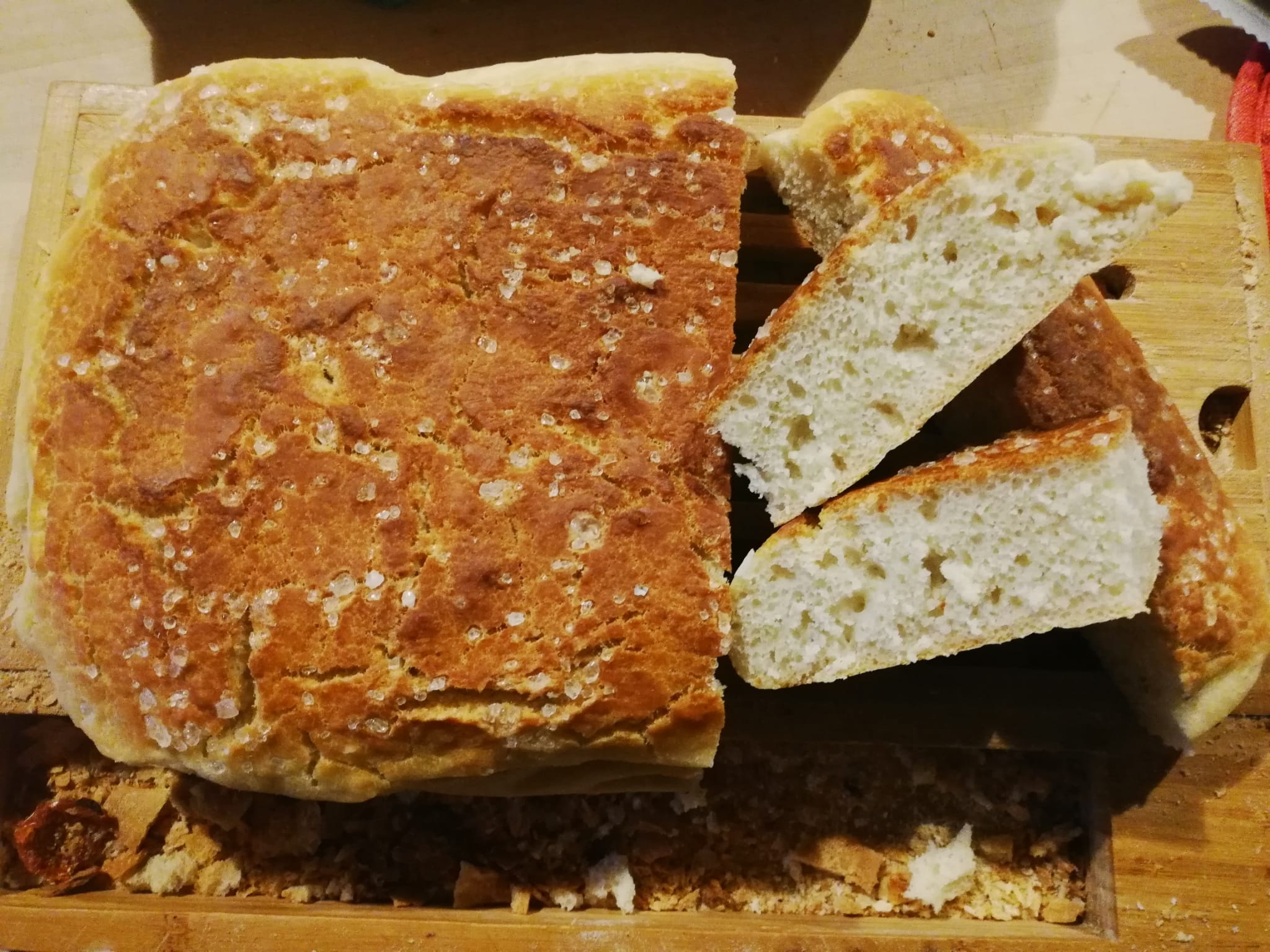 You will get a high and crunchy focaccia, which you can stuff with cold cuts and cheeses, or eat on its own.