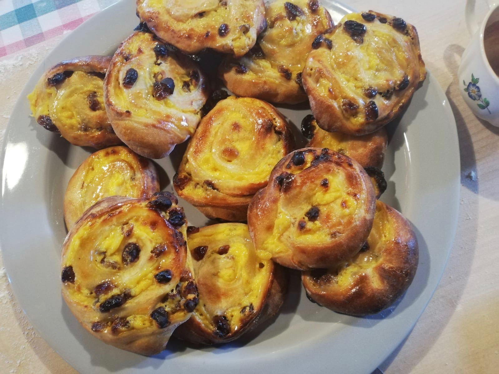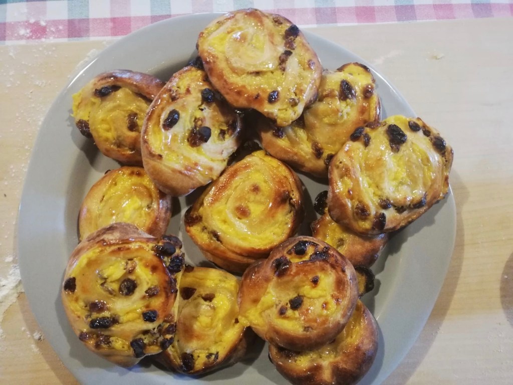The girelle danesi-swivels is girelle in English- are soft brioches and much-loved sweets,the ones we always find in coffee shops. Danish girelle are fluffy brioche with a gorgeous filling of custard and raisins, for a genuine breakfast or snack.