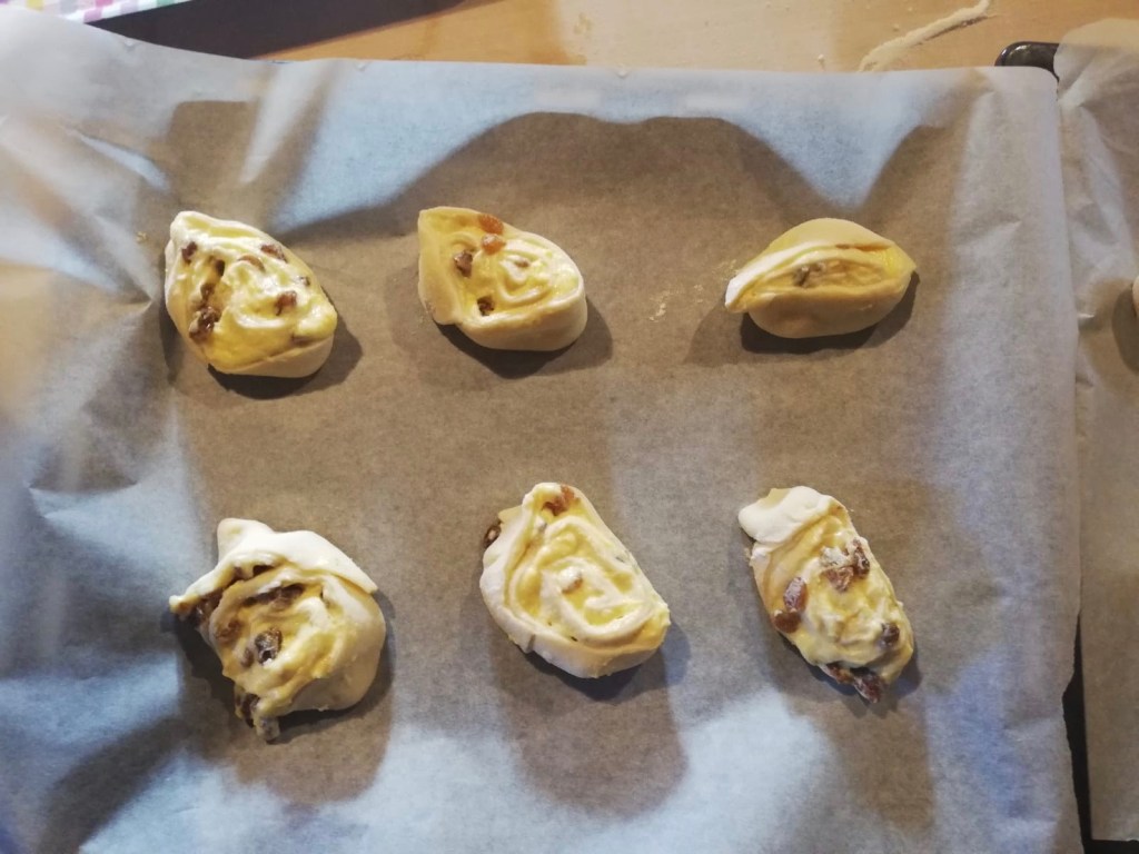Place the girelle on an oven tray lined with baking paper and let rise for another hour.