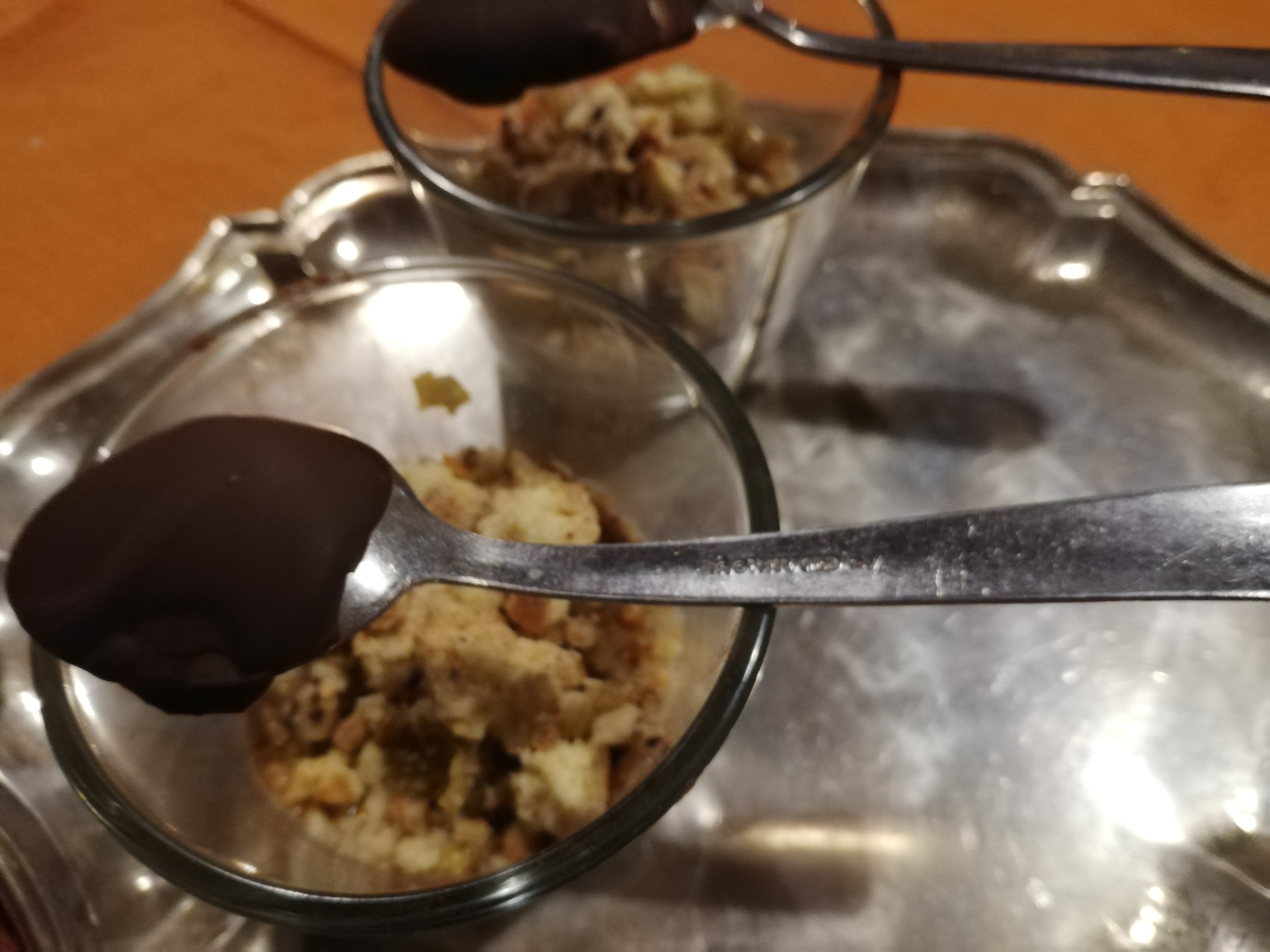 Dip 4 teaspoons (excluding the handles!) in the melted chocolate and put them to cool in the refrigerator.