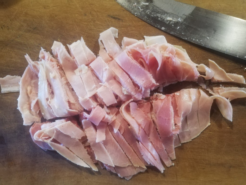 Slice the prosciutto in long tiny strips