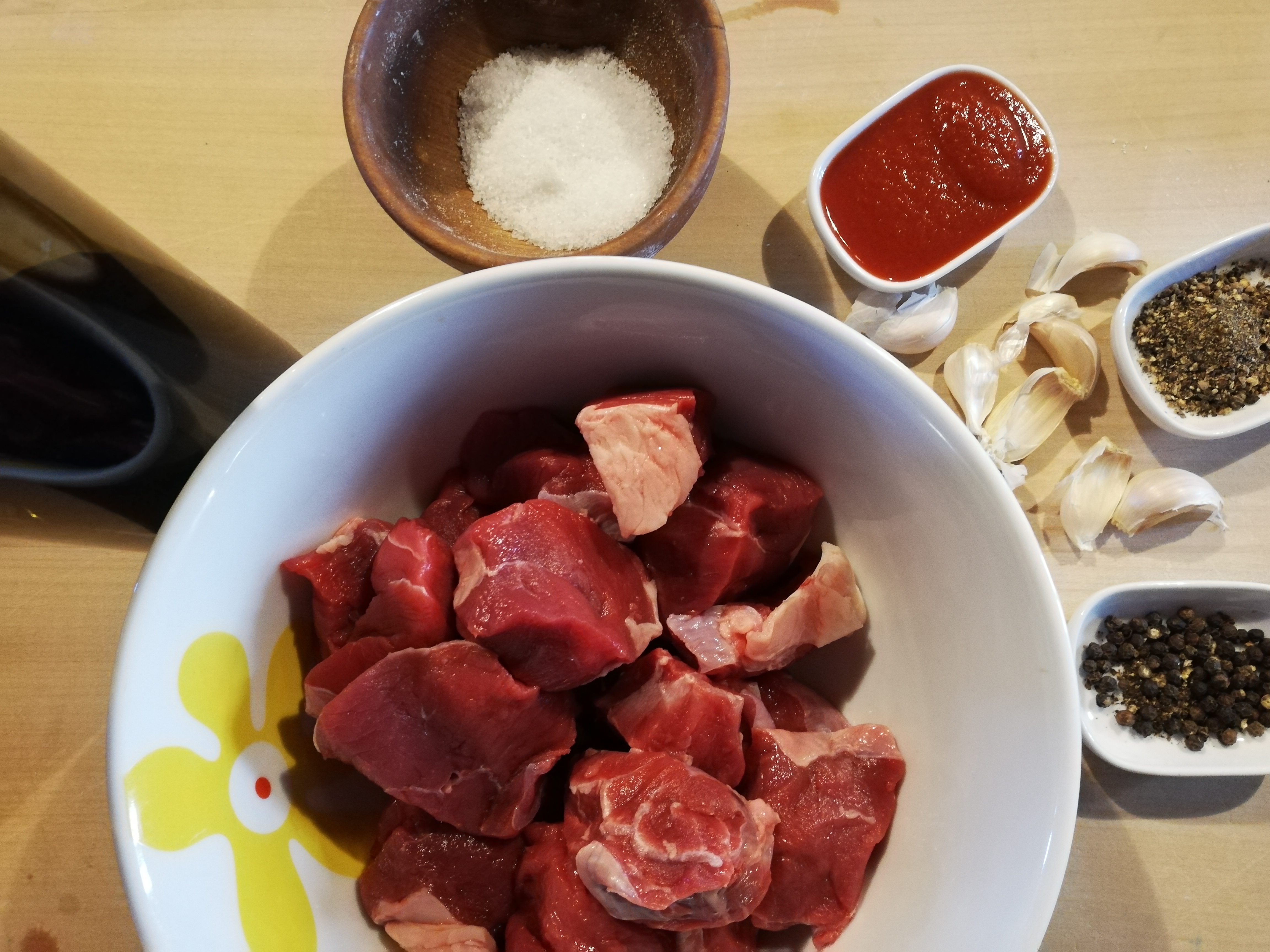 – 1 kg = ca. 35 oz.of young beef muscle (with veins of fat and callosity)