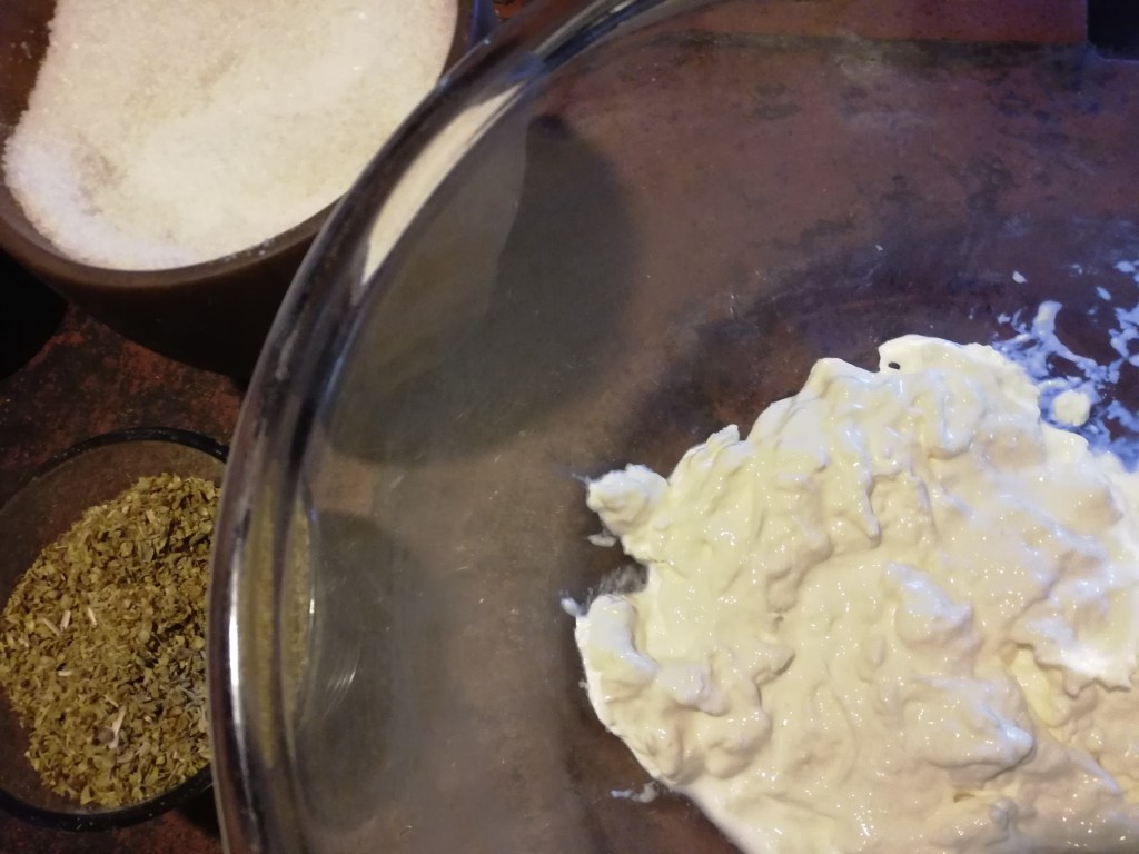 Add 1 tsp. oregano, and the inside of the burrata.