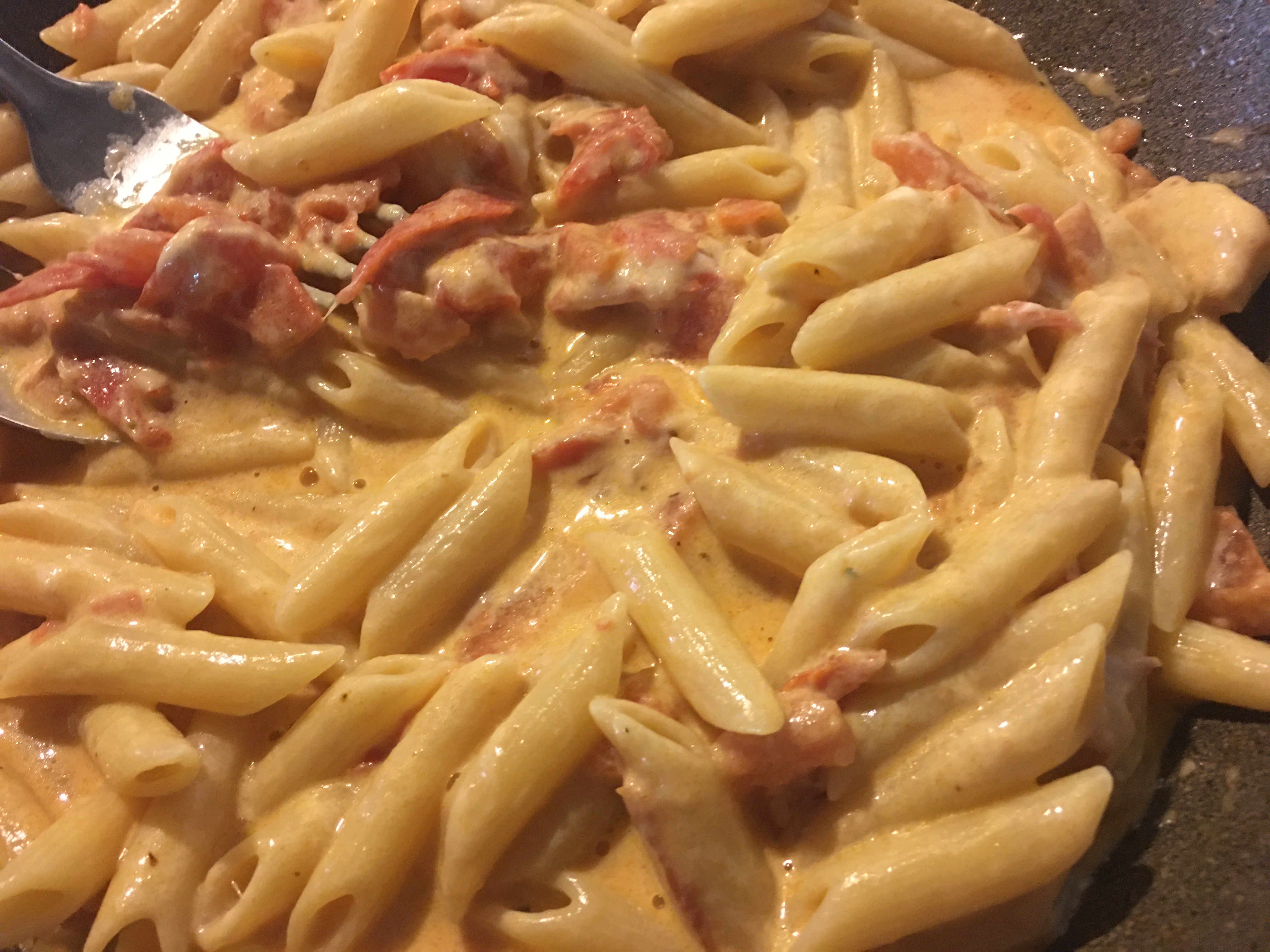 When the pasta is almost ready, but still a little hard, drain it .