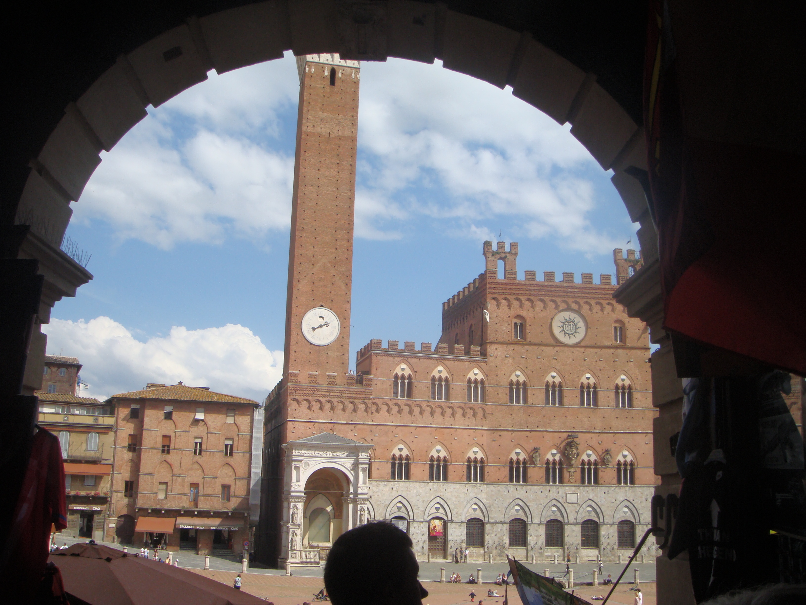 La Piazza del Campo -a forma di conchiglia-dove ,due volte l’anno avviene il Palio, specialissima antica corsa di cavalli