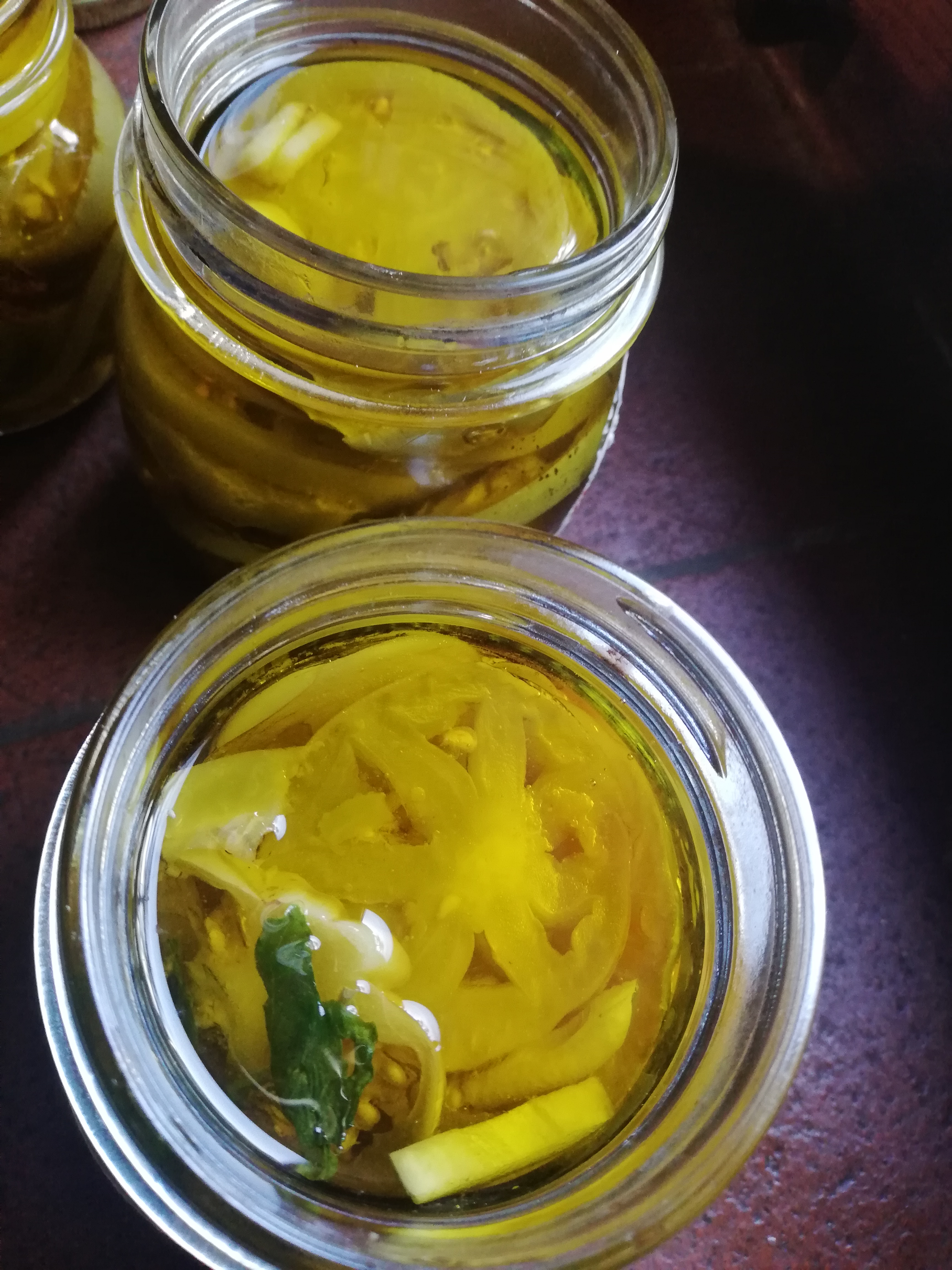 There comes a time when tomato plants, although healthy, cannot ripen the fruits. Usually, we tend to fry or throw them away, why not green tomatoes in EVOO ?