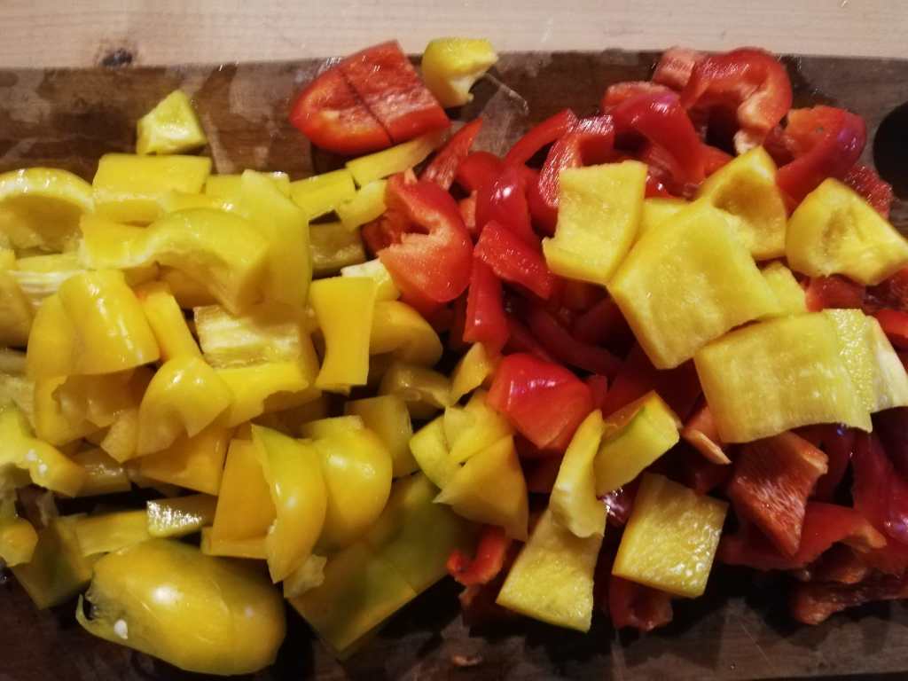 In case you sliced the peppers too large, cut them with the scissors when they are cooking and a little softer.