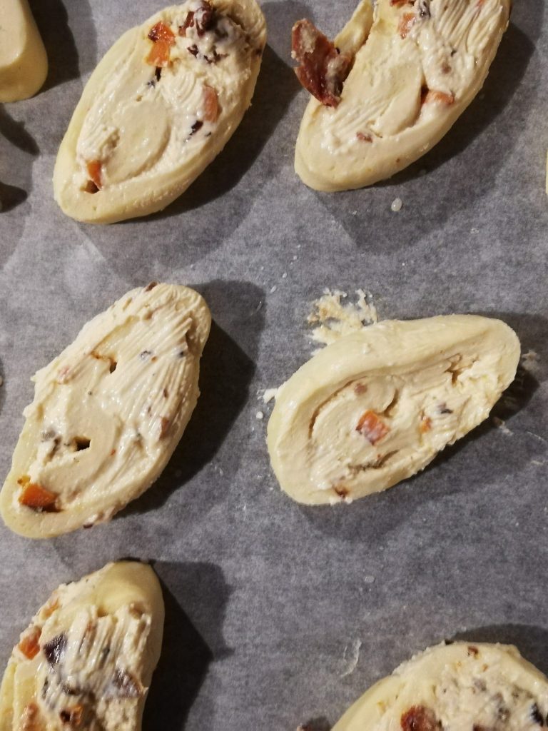 Line up the slices on a baking sheet covered with parchment paper, brush strokes of water, let them rise for 45 minutes.