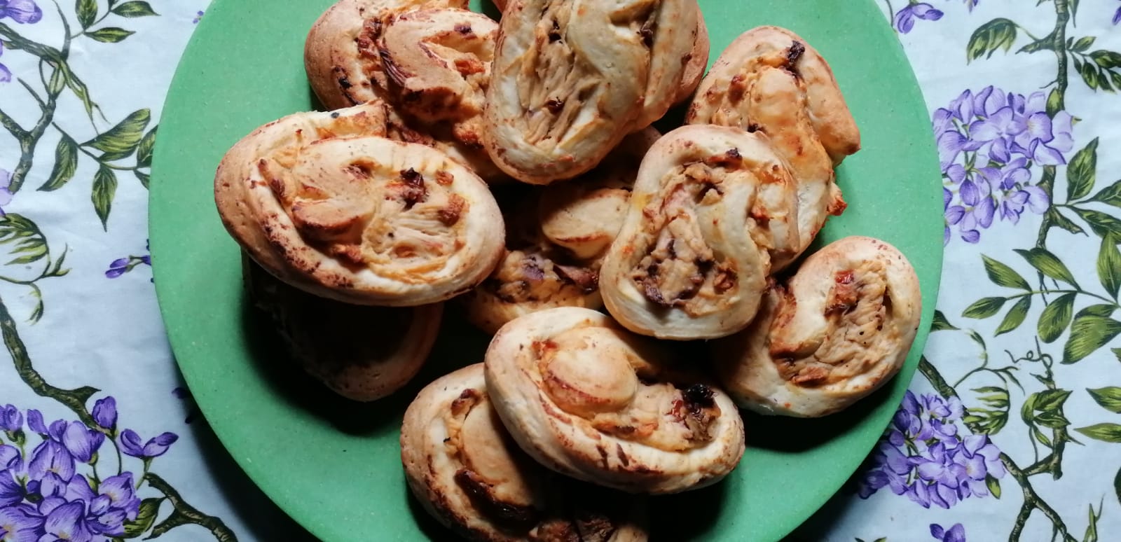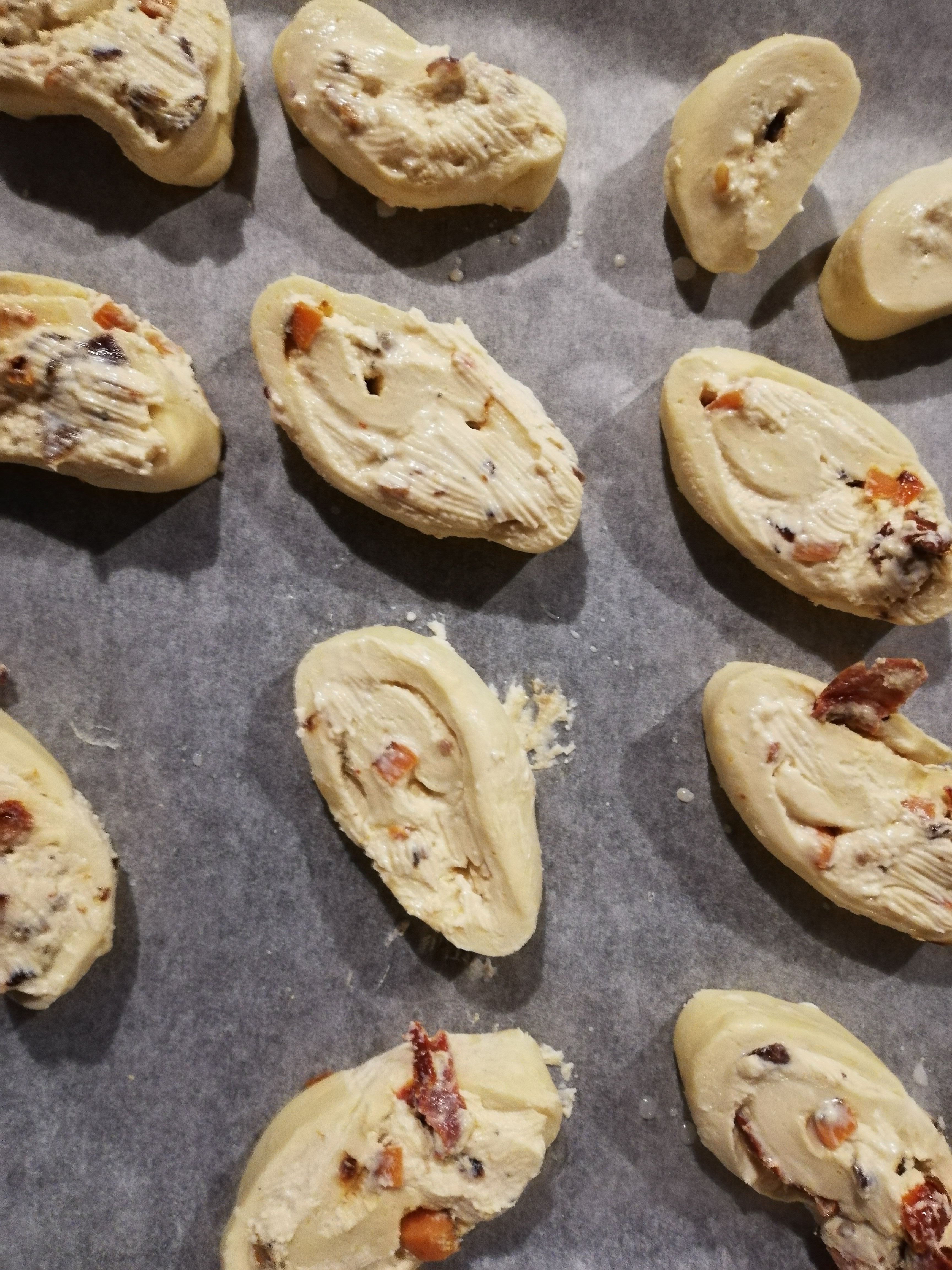 Line up the slices on a baking sheet covered with parchment paper, brush strokes of water, let them rise for 45 minutes.