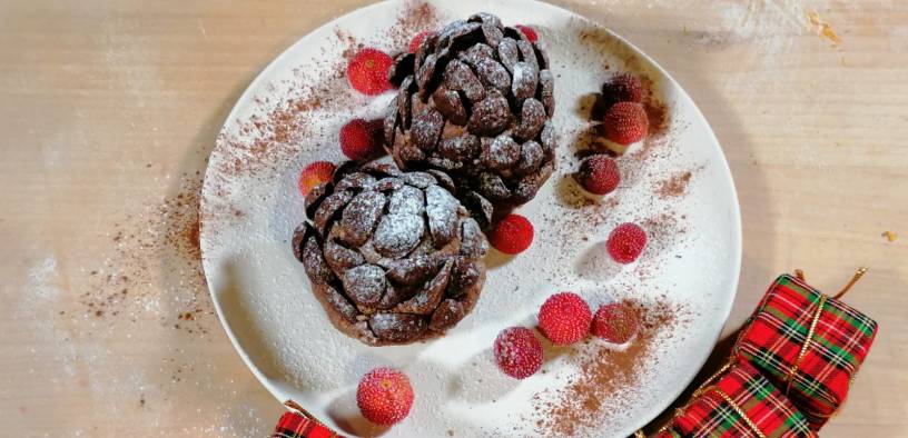 To prepare the chocolate pinecones, first prepare the chocolate dough.