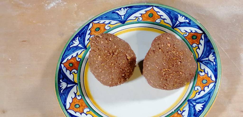 Divide the dough into 2 portions, and give the shape of a pointed arancino (you don’t know arancino? imagine a fat cone)