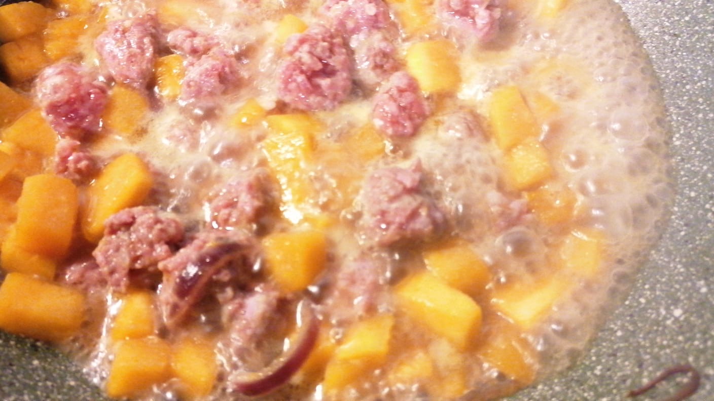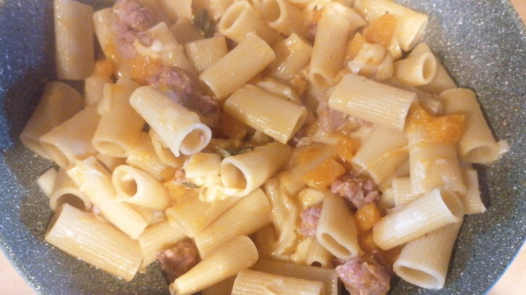 The pumpkin, sausage and provola pasta is ready