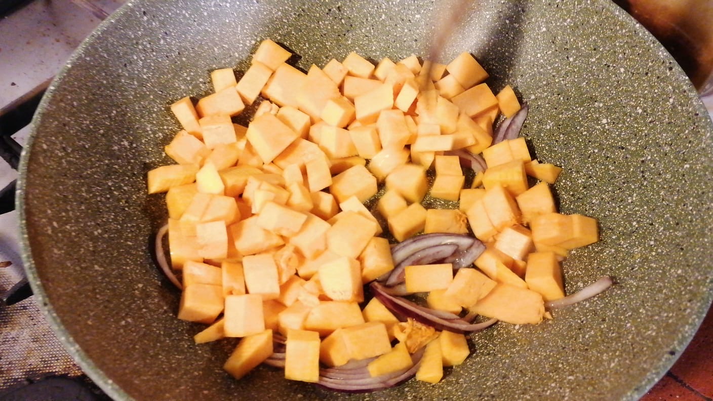 Add the pumpkin and after 5 minutes add the sausage
