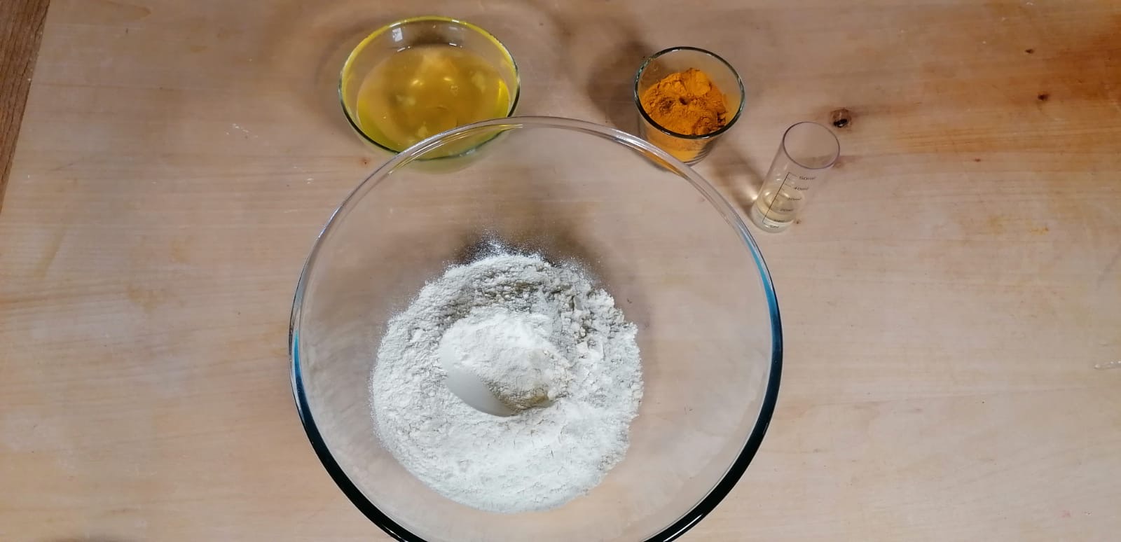 Combine the egg whites and sunflower oil and work until we get a smooth dough.