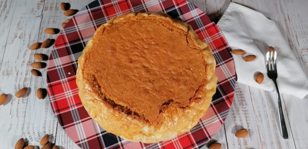 Whip the eggs with the sugar, add the melted butter, and finally almonds, amaretti, and flour.