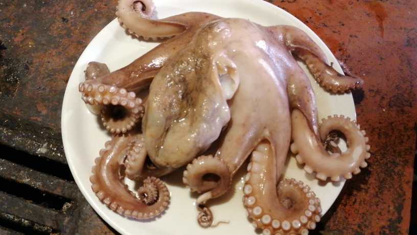 Immerse the octopus in water, make sure that it is completely covered with water, tentacles upwards, body immersed in the bottom.