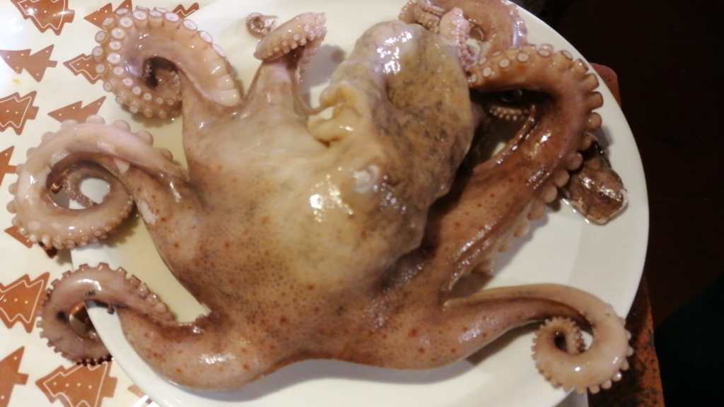 Many times, we see octopuses at the grocery, frozen or not and we think it will be so difficult to cook them. It is not, in a certain way it’s also so interesting and octopus is such healthy food. During holidays we had fun cooking it.