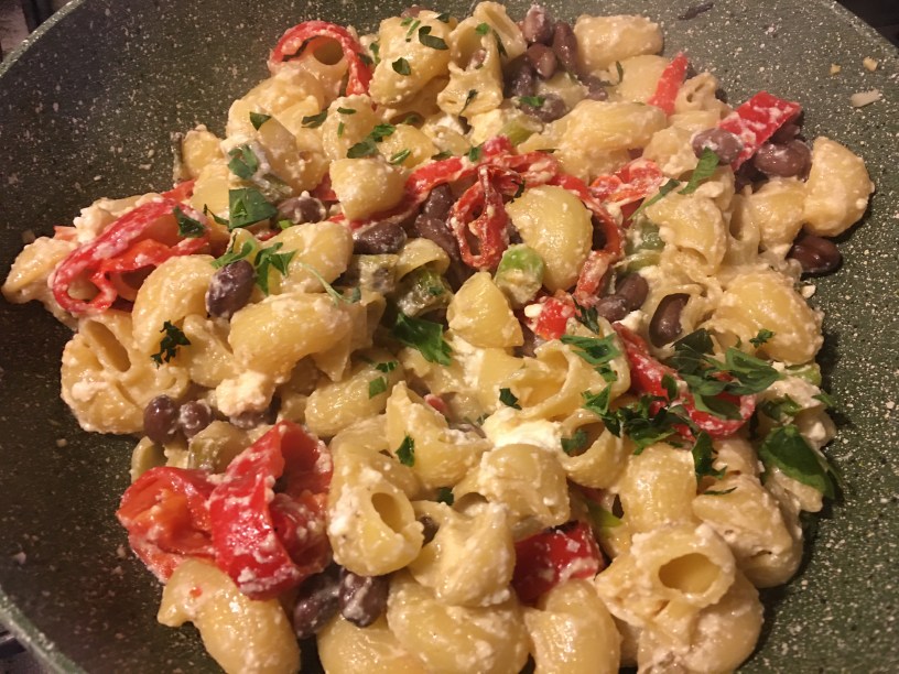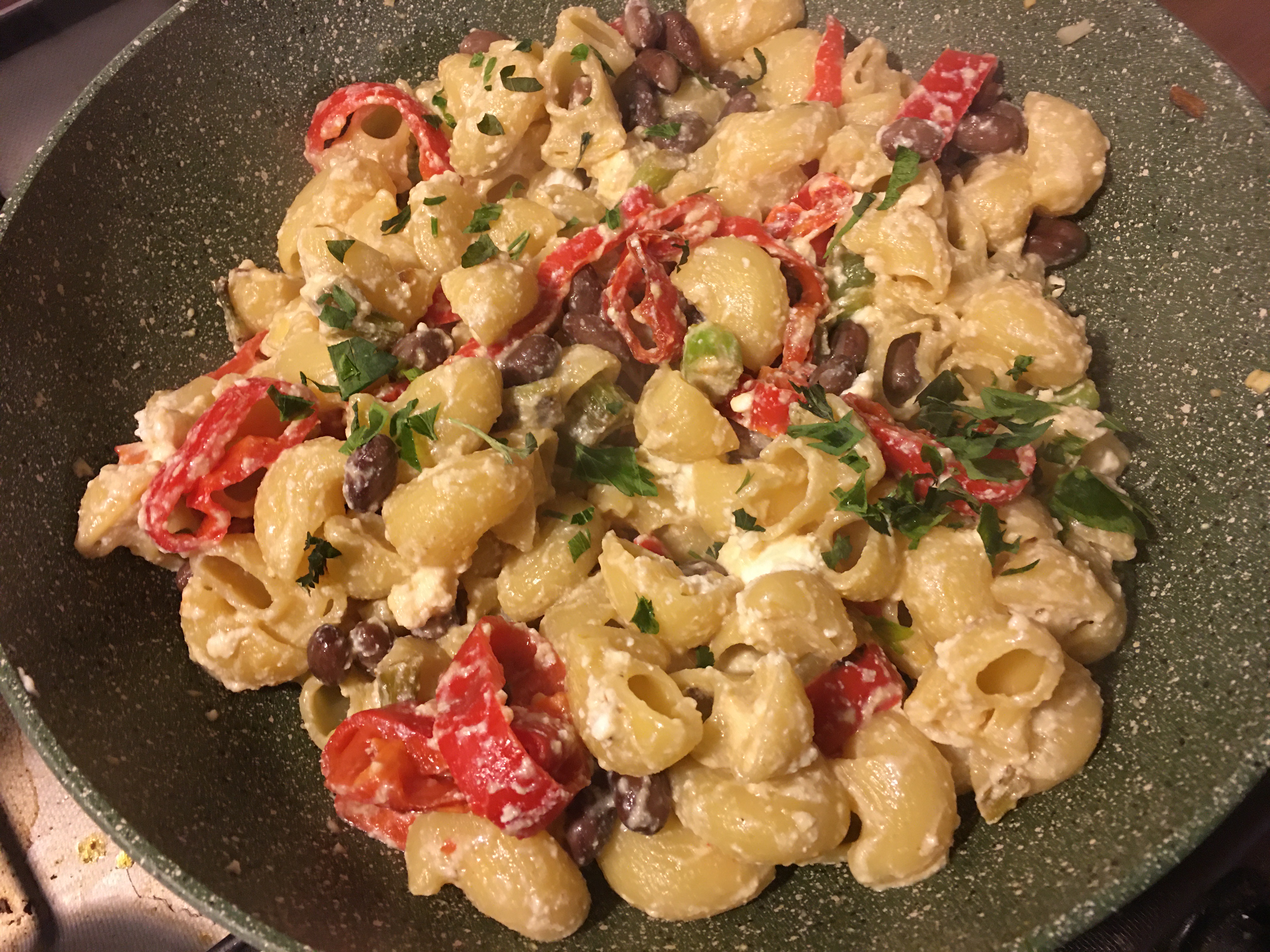 Mix with the cream/ricotta/yogurt /vegan ricotta and 2 tbs.of Parmesan/vegan cheese.