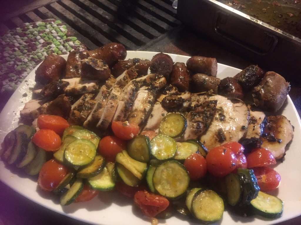 The various types of meat cook well together as far as their size is similar and at the end, there is great satisfaction when you see your family and friends enjoying the differences.