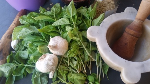 Pesto with Basil click here for the recipe(creamy as we add pasta water)