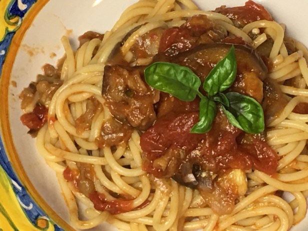 Pasta alla Norma(with eggplants/aubergines) click here for the recipe