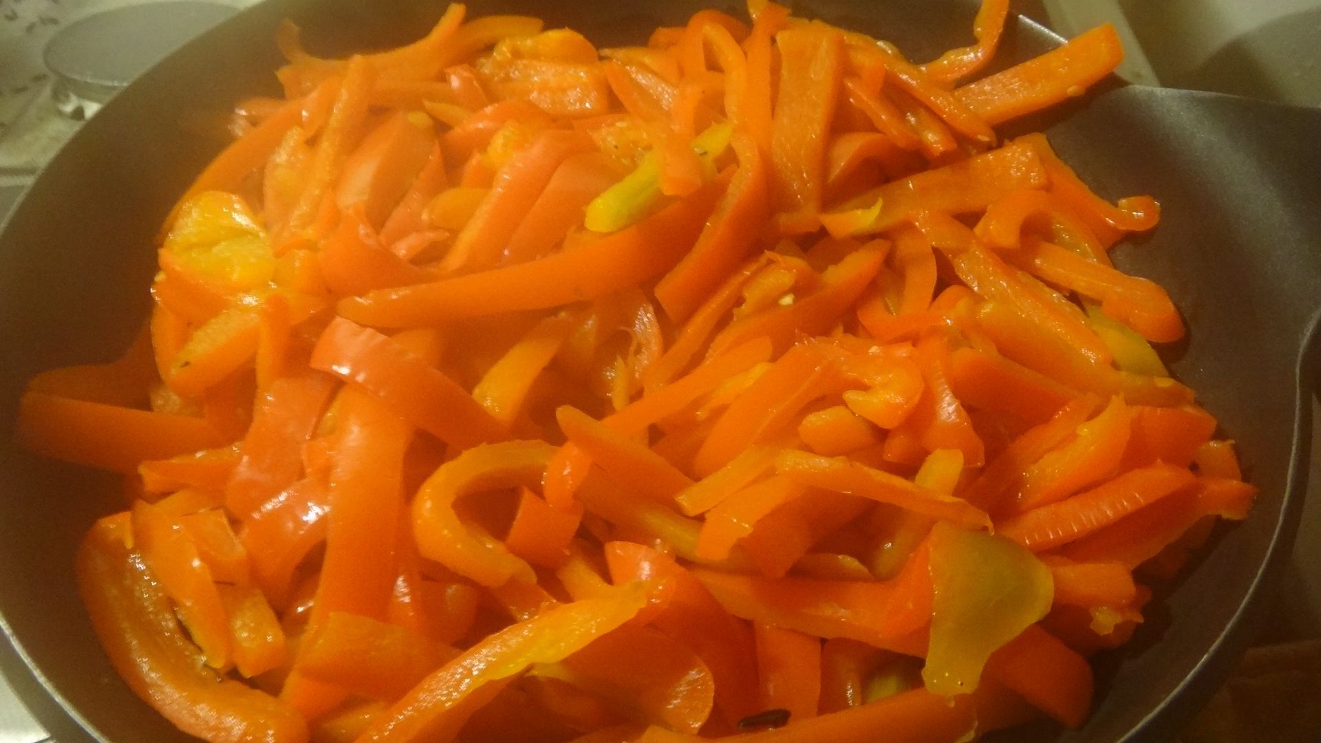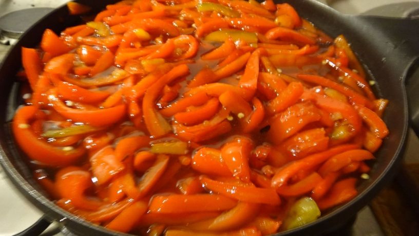 - in a large saucepan pour the peppers