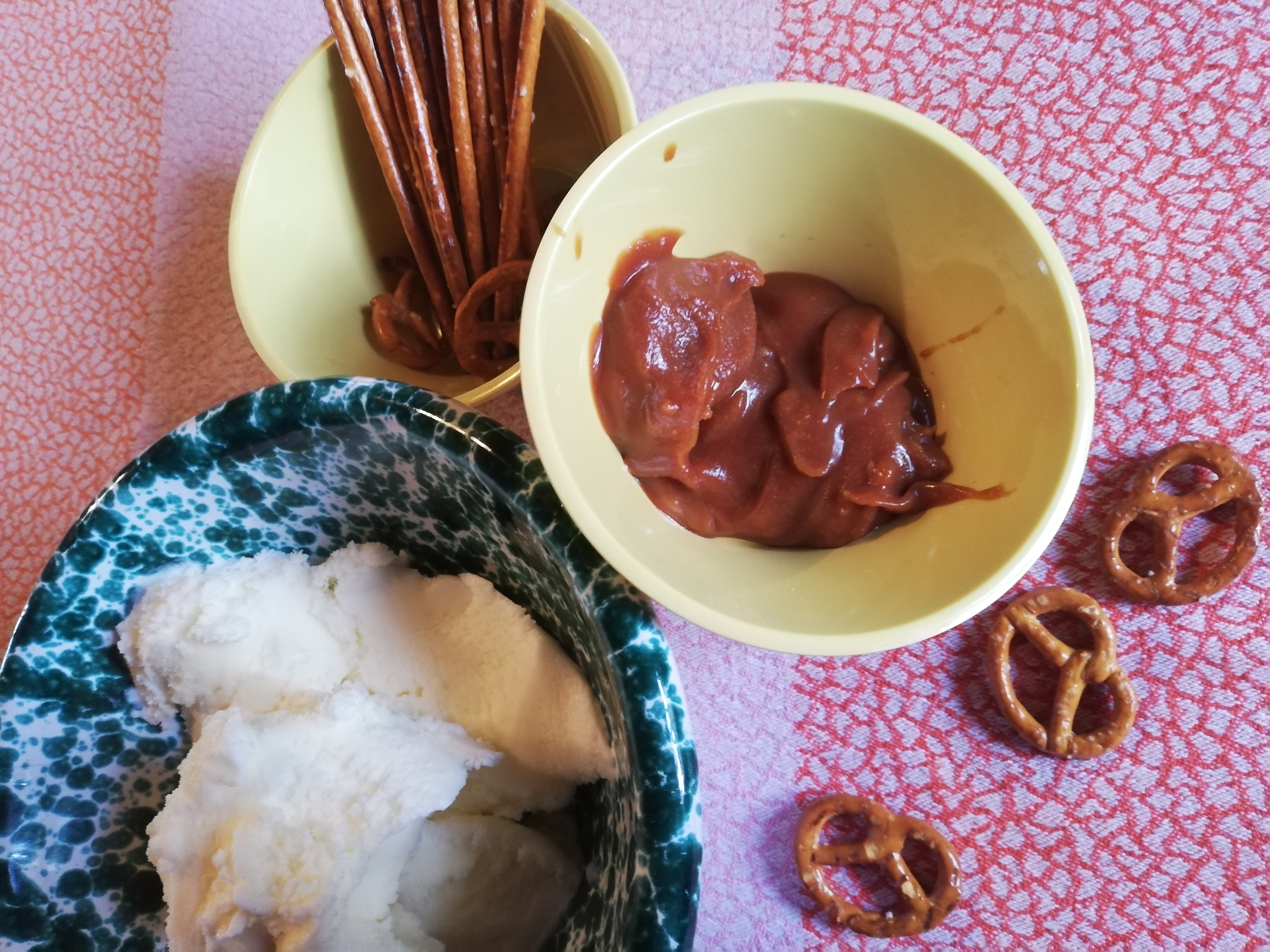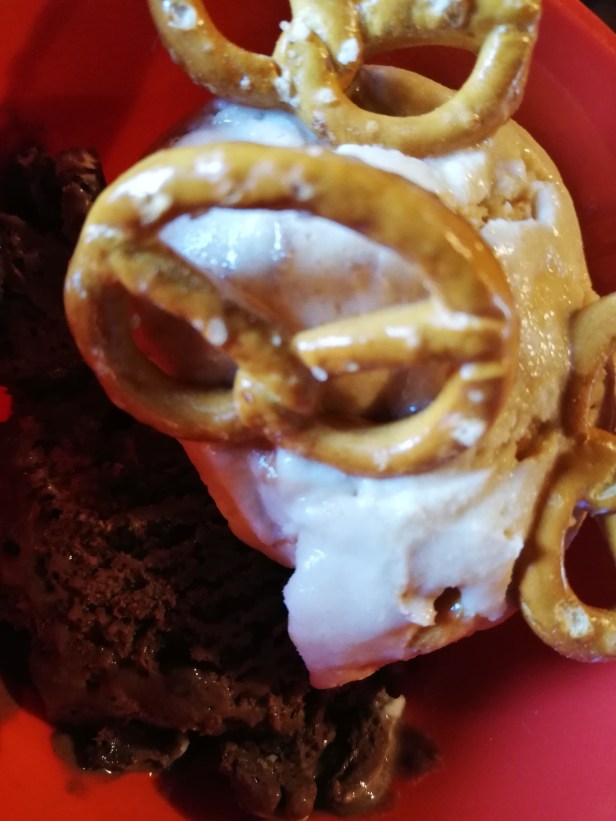 We tried a curiosity we had heard about: vanilla, salted caramel, and pretzels gelato.