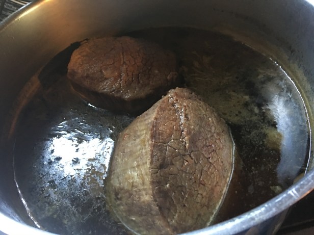 Cook the veal at medium and turn it in every 15 minutes. Cook it until tender. (ca. 1 hour/1-hour ½)).